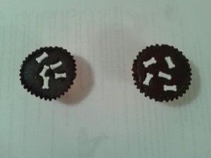 Peanut butter cookies with carob centers.