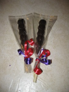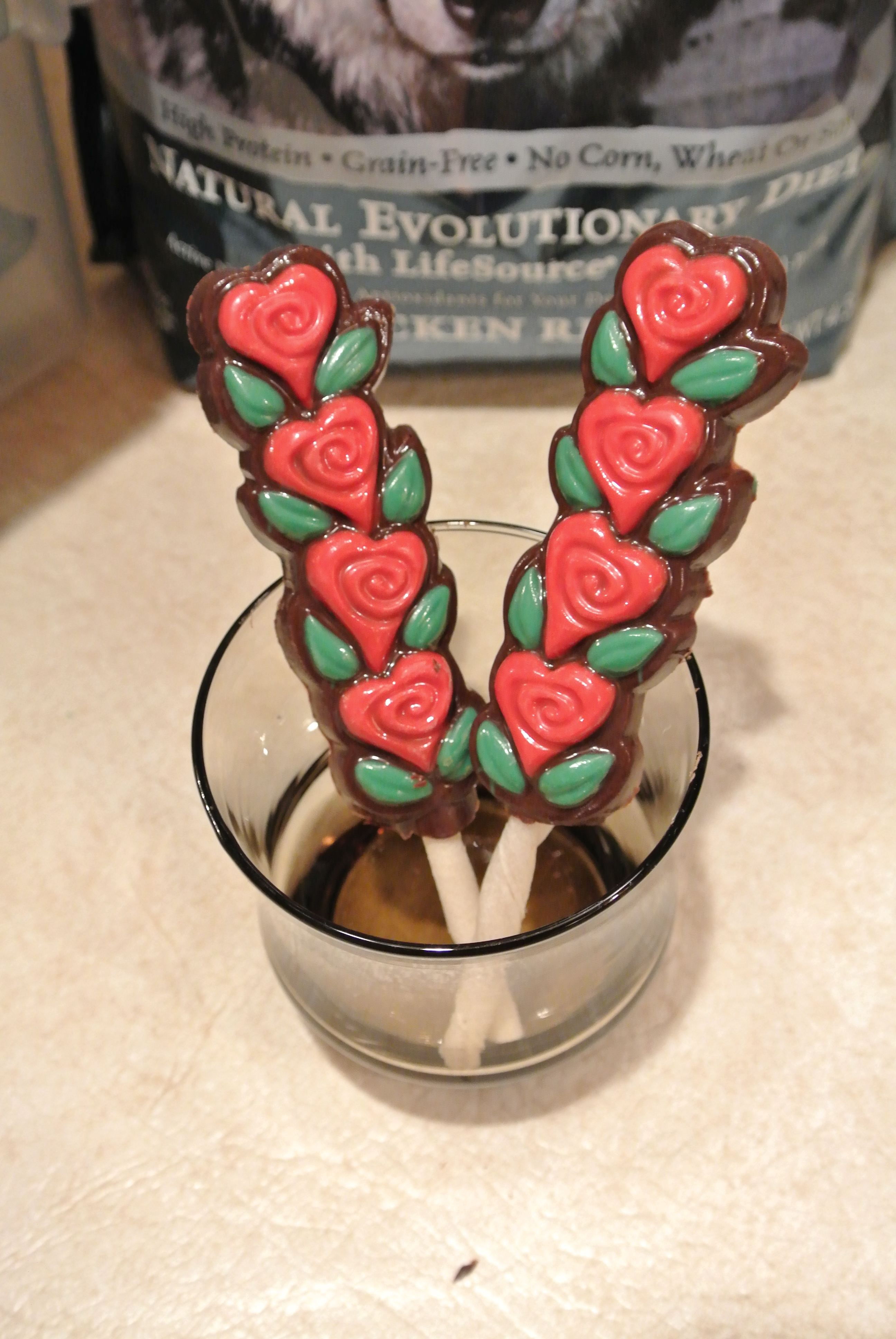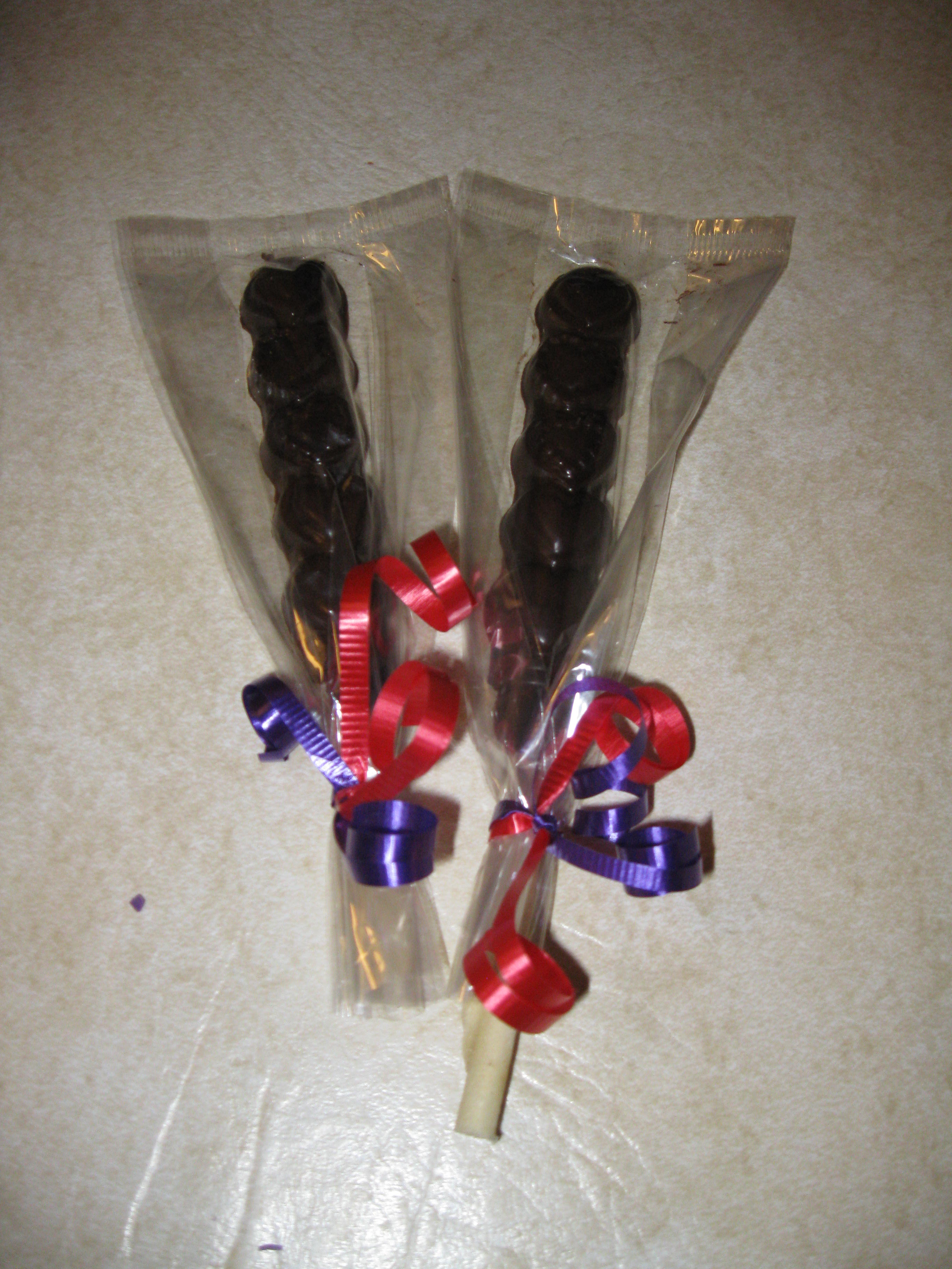 Our lolli-pups use rawhide as the stick so the entire thing is edible.
